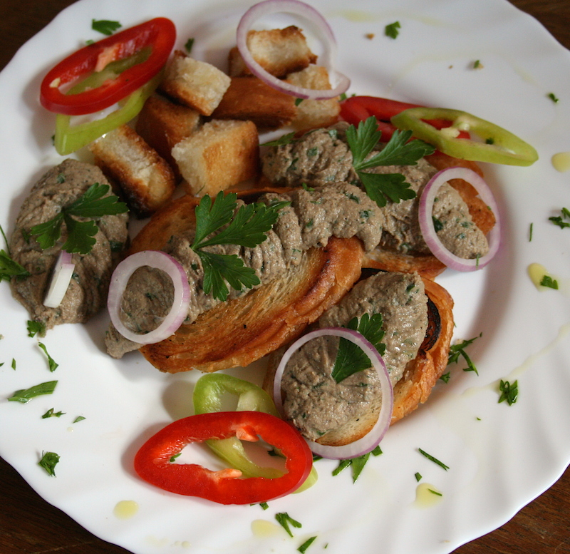 - 50 dkg nyúlmáj (lehet pl. csirke-, pulyka- vagy sertésmáj is),
