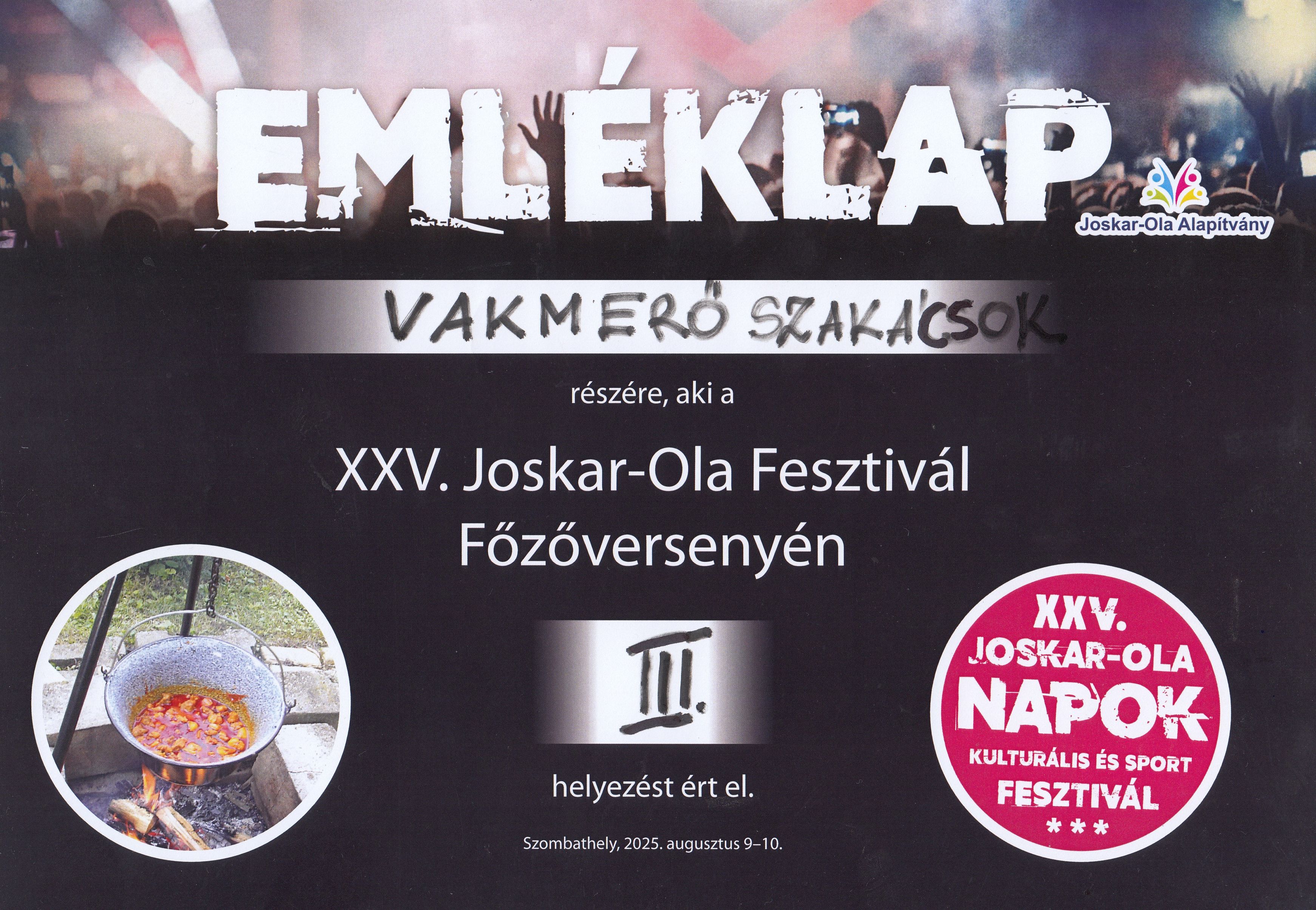 A XXV. Joskar-Ola Napok kulturális és sportfesztiválon a Vakok és Gyengénlátók Vas Megyei Egyesülete (LÁTVASE) volt az idei támogatott szervezet, csapata pedig 13 induló közül a harmadik helyet szerezte meg Alföldi gulyáslevesével.