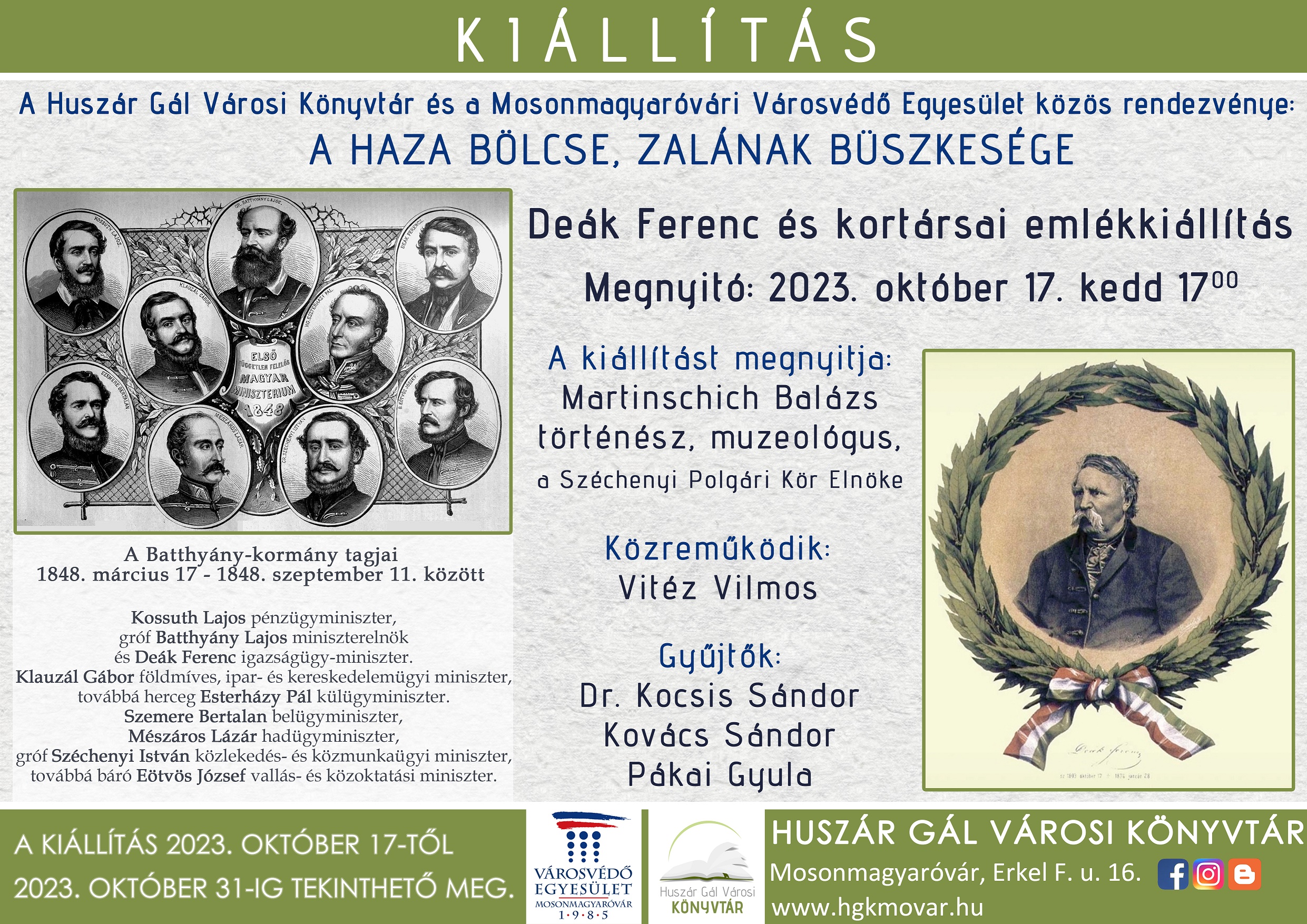 kezdőlap / Regionális Hírek / Közélet / Deák Ferenc és kortársai emlékkiállítás a Huszár Gál Városi Könyvtárban