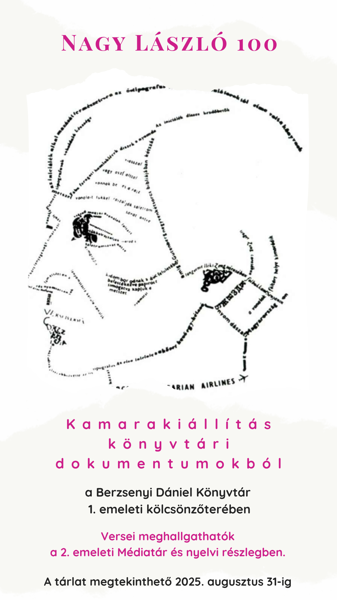 A kiállítás könyvtári dokumentumokon keresztül idézi fel Nagy László életútját, költészetét, kultuszát, valamint fordítói és képzőművészeti munkásságát.
