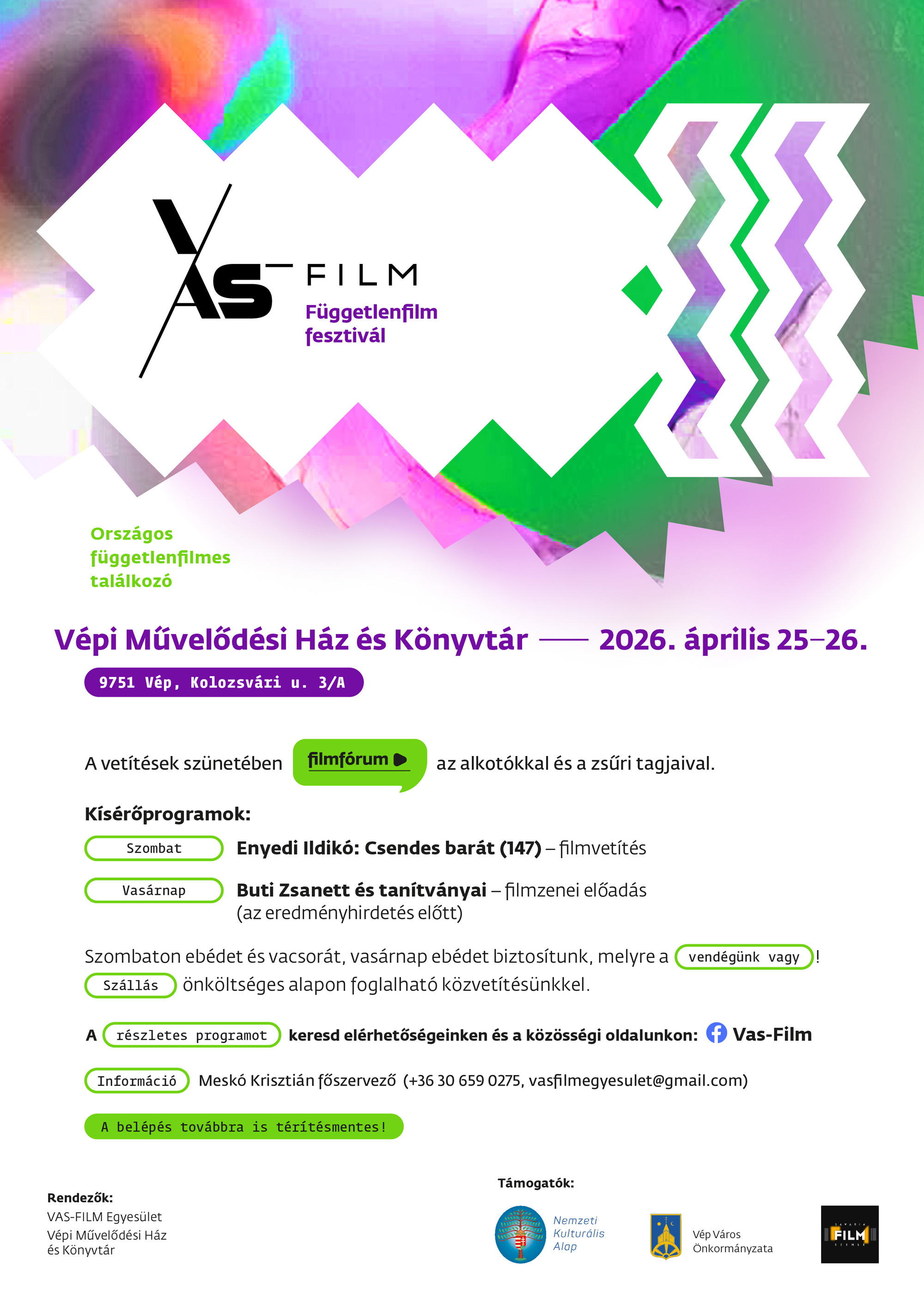 A filmszemle után közvetlenül a független filmeseké a főszerep: a VAS-FILM 22 független filmfesztivál a Vépi Művelődési Ház és Könyvtárban várja az érdeklődőket. A kétnapos rendezvény országos találkozóként működik, ahol: folyamatos filmvetítések zajlanak, a szünetekben filmfórumokon lehet beszélgetni az alkotókkal és a zsűrivel, a belépés ingyenes marad minden látogató számára.
