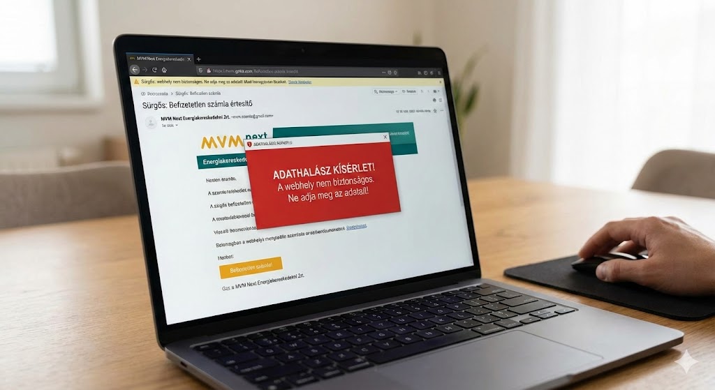 Fontos: A csalók célja minden esetben az, hogy a levélben elhelyezett linkre kattintva egy hamis weboldalra tereljék az áldozatot, amely külsőre hasonlít az MVM hivatalos felületére (vagy egy banki oldalra), de valójában az adatok ellopását szolgálja.