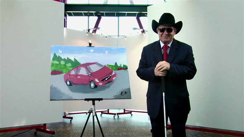 A festő először alaposan végigtapogatta az autót: az íveket, a karosszéria formáit és a részleteket. Ezeket memóriájában rögzítette, majd a tapintásból és a képzeletéből építkezve készítette el a festményt.