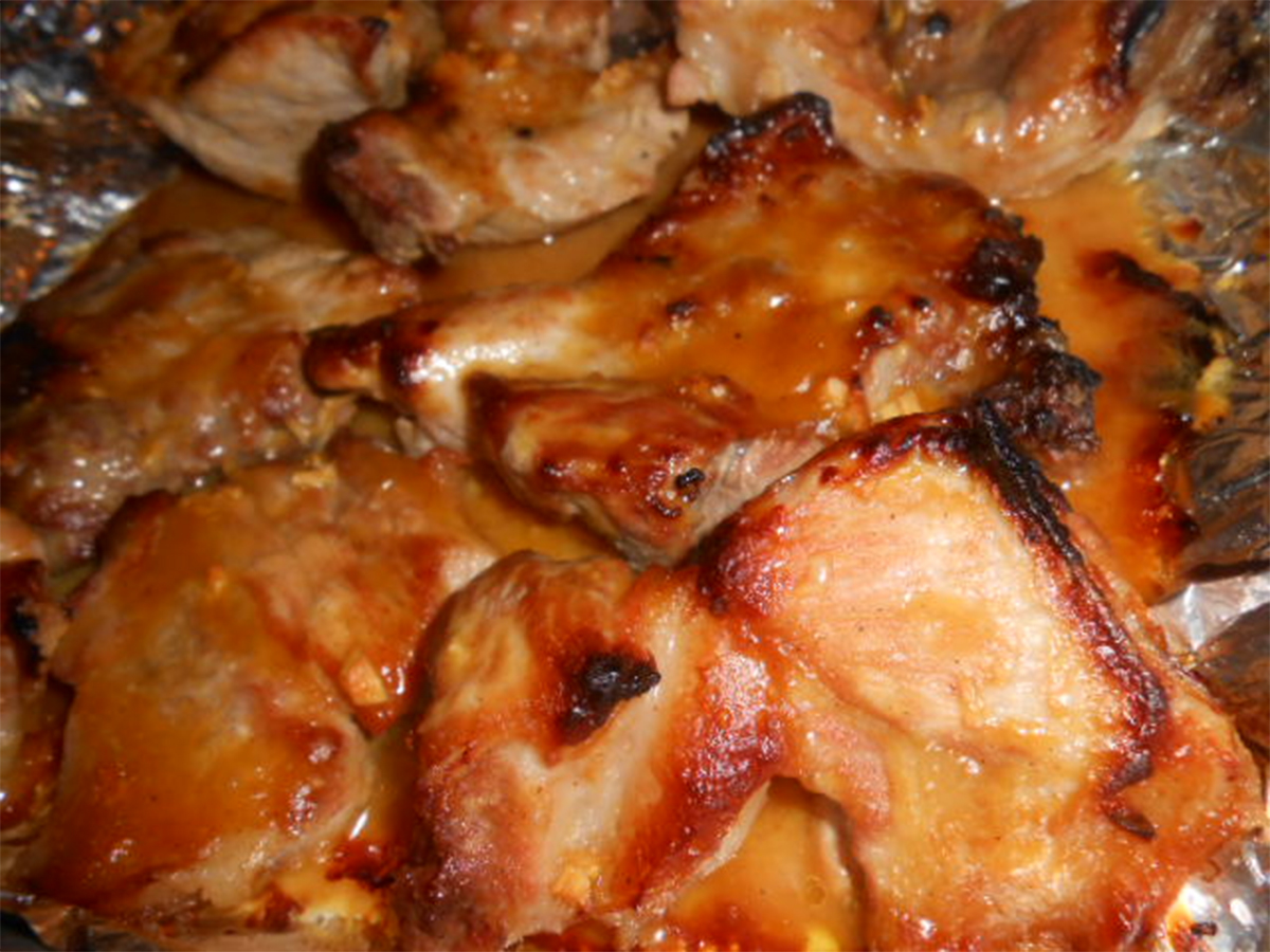 Készítsük el a szószt: keverjük össze a mézet a mustárral és a sóval. Tegyük a húst kiolajozott, tepsibe majd szórjuk meg őrölt borssal, ezután pedig kenjük le a szósszal.