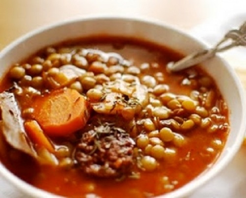 Zöldséges lencseleves füstölt hússal